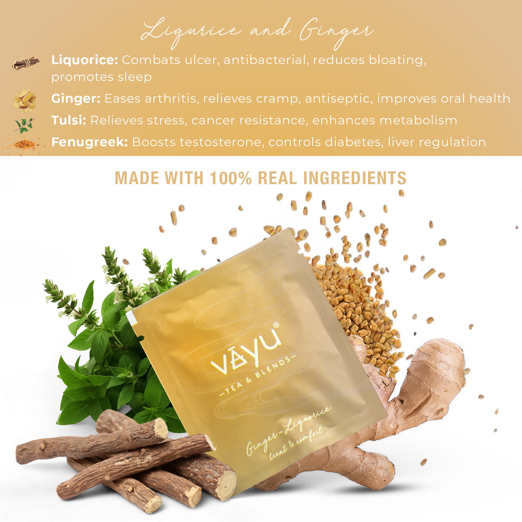 It doesn’t stop here The Royal Collection also boasts our signature range of caffeine-free herbal blends. With Ram Tulsi and Krishna Tulsi at the foundation, this collection offers unique wellness blends such as Lavender & Chamomile, Liquorice & Ginger, Ashwagandha & Moringa and Turmeric & Fennel, all revered for their healing properties.